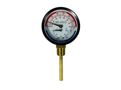 The ATH T&P Gauge (20-1020) provides precise temperature and pressure readings up to 75 and 100 psi in Advanced Thermal Hydronics boilers. This gauge supports safe system operation and easy performance monitoring.