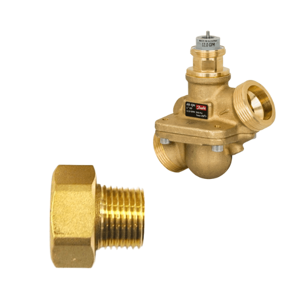 The Danfoss AB-QM Tail Pieces are threaded tailpiece kits for the Danfoss AB-QM series pressure valve. Maddock sells both NPT and FS thread types. Note: each AB-QM PICV requires two tail pieces.